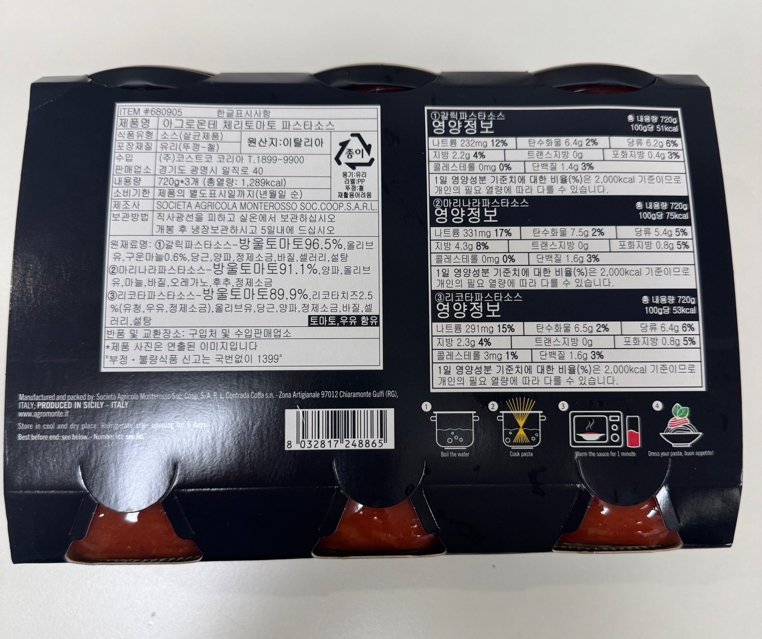아그로몬테 토마토 소스가 눈에 보여서 구입했어요.
