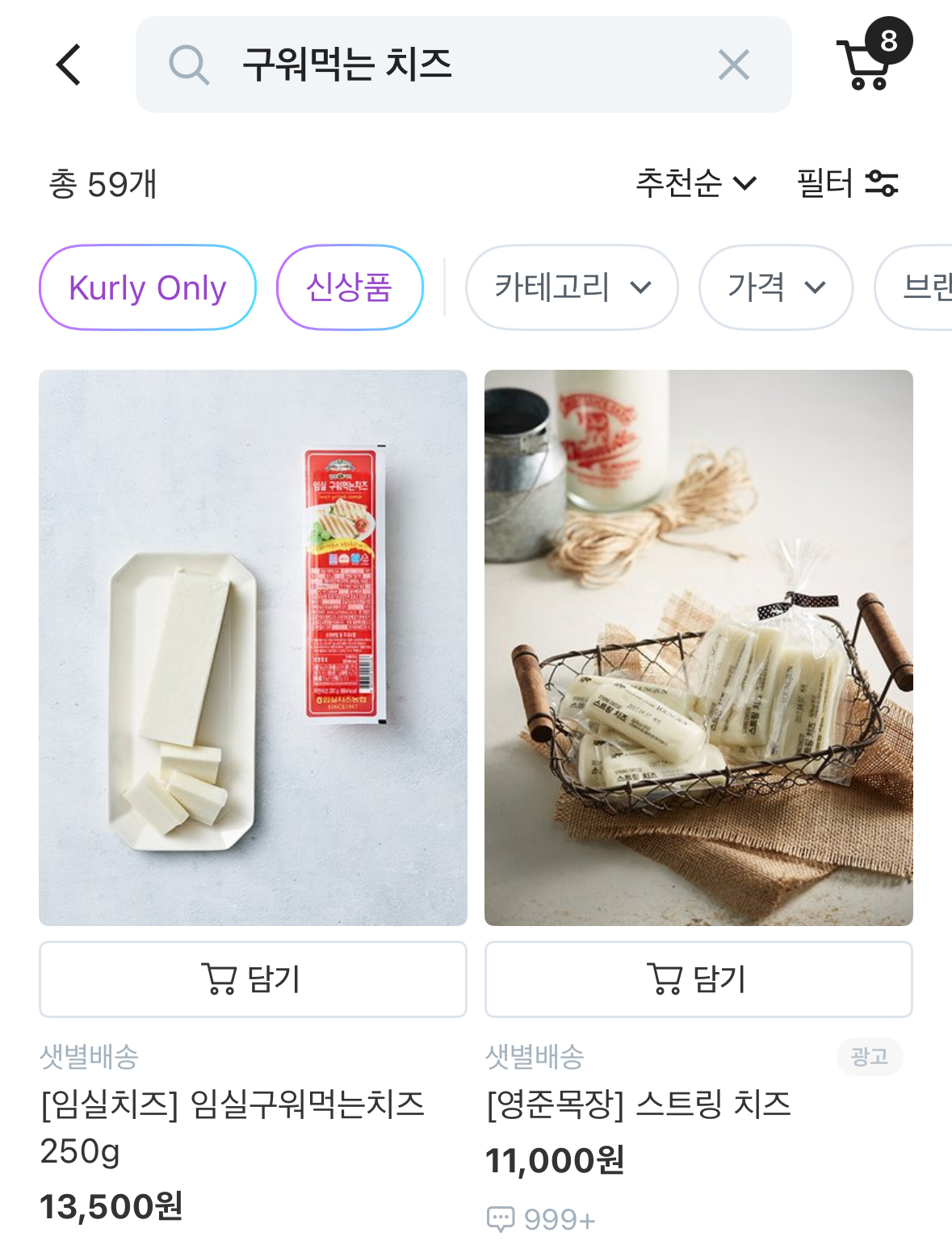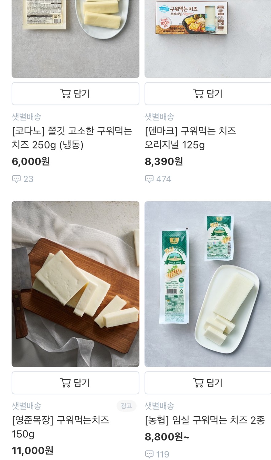 아래는 컬리 판매 구워먹는 치즈입니다.