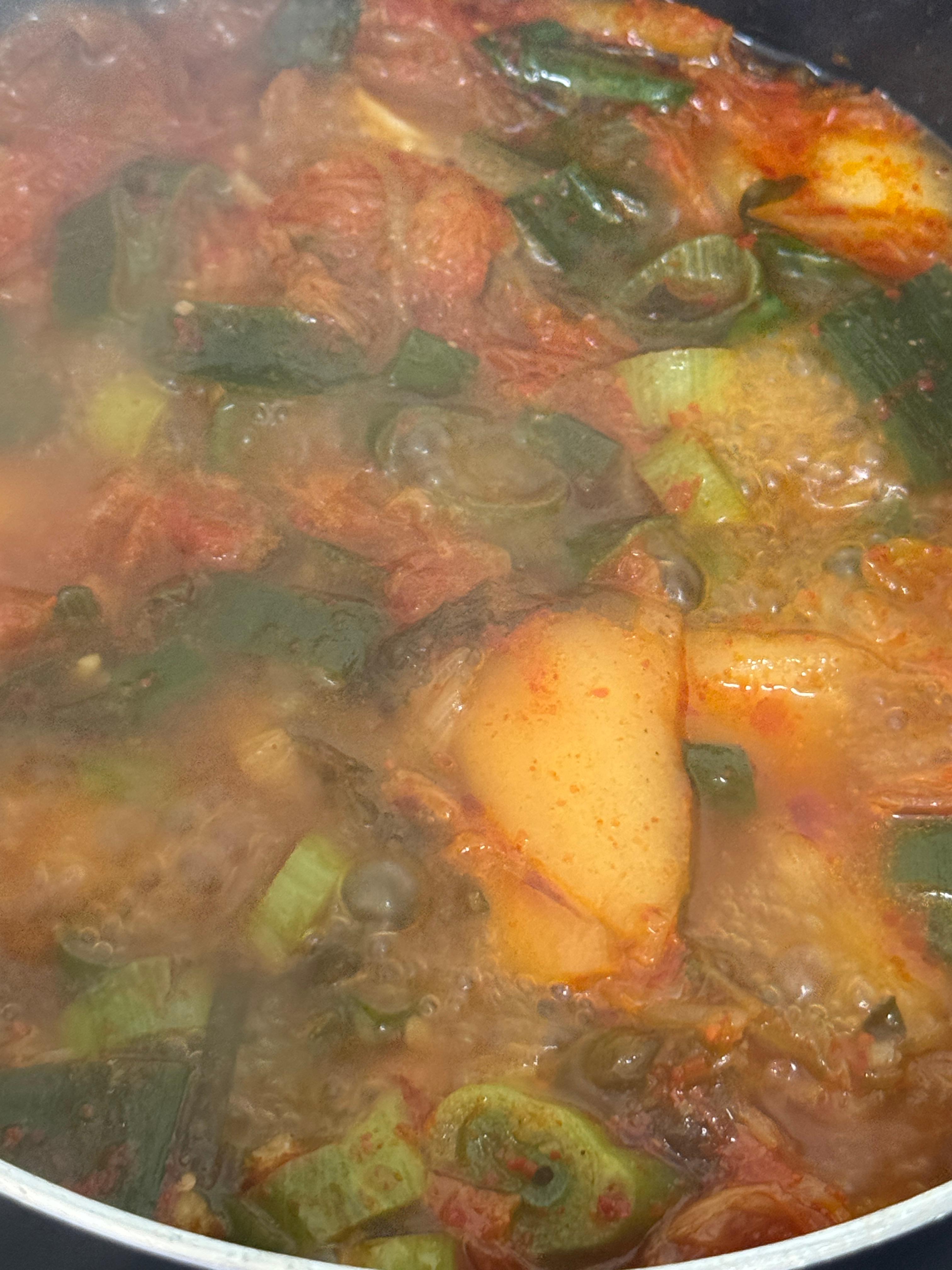 7.대파넣고 한번더 끓어오르면 식초1스푼