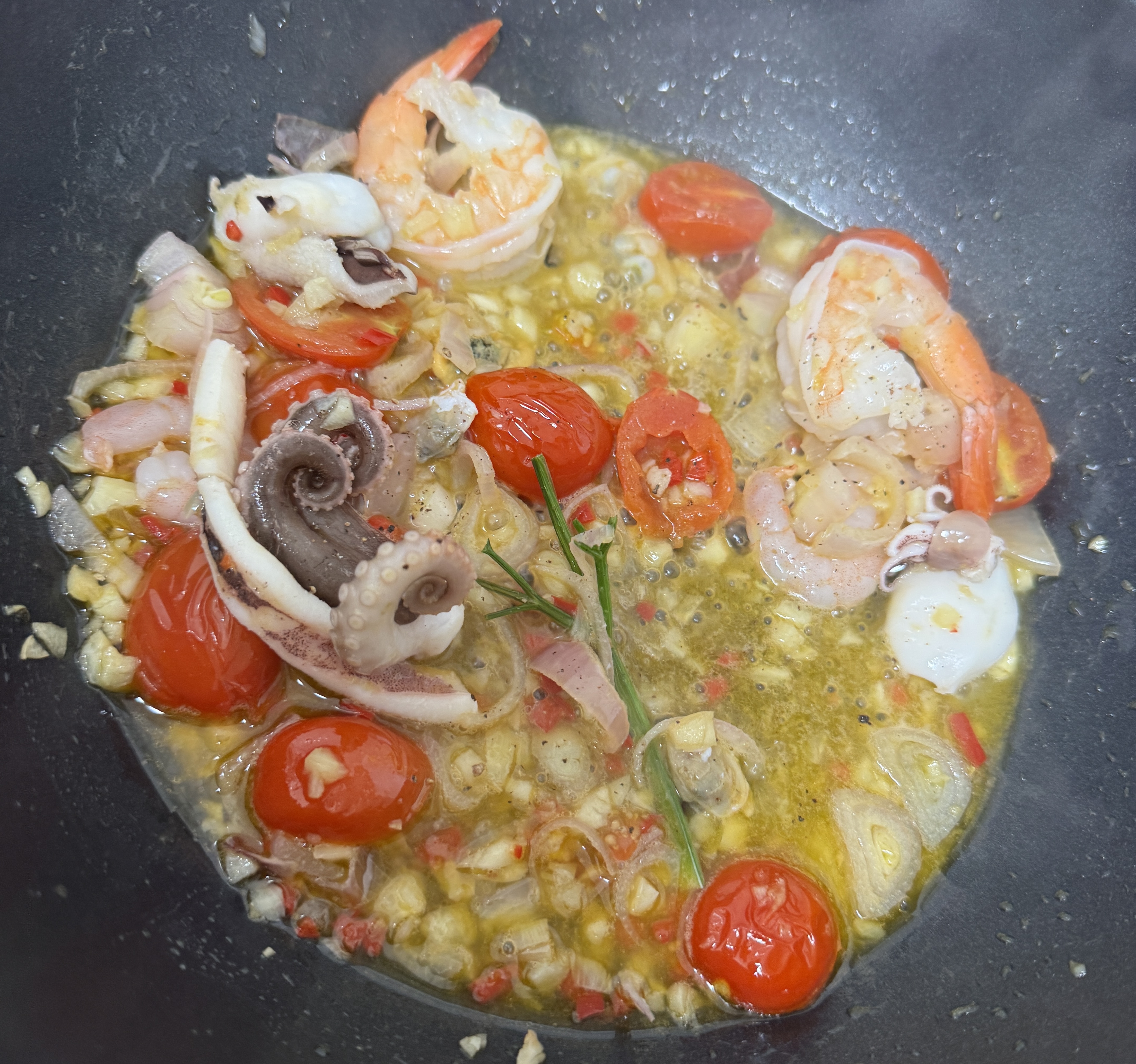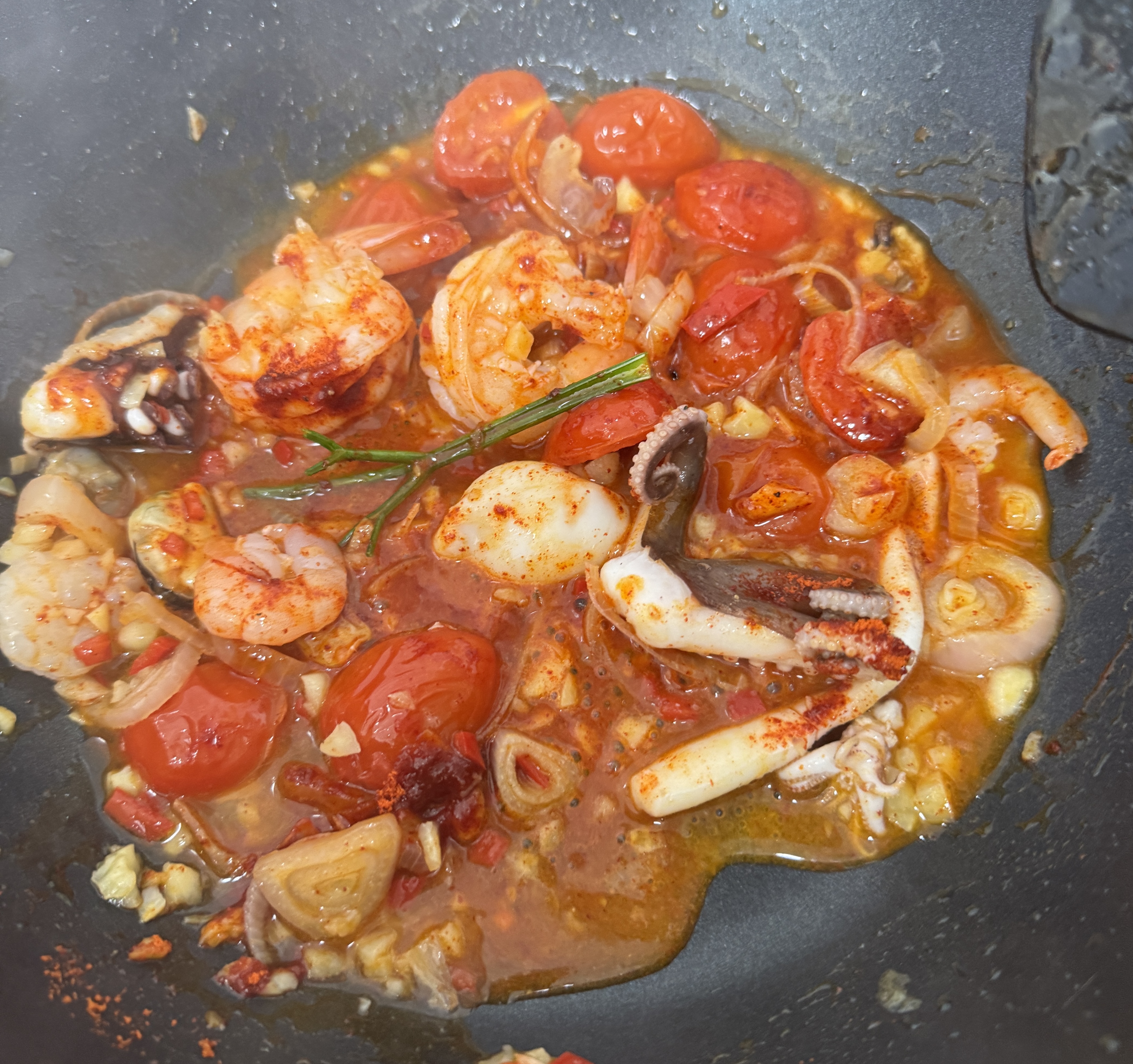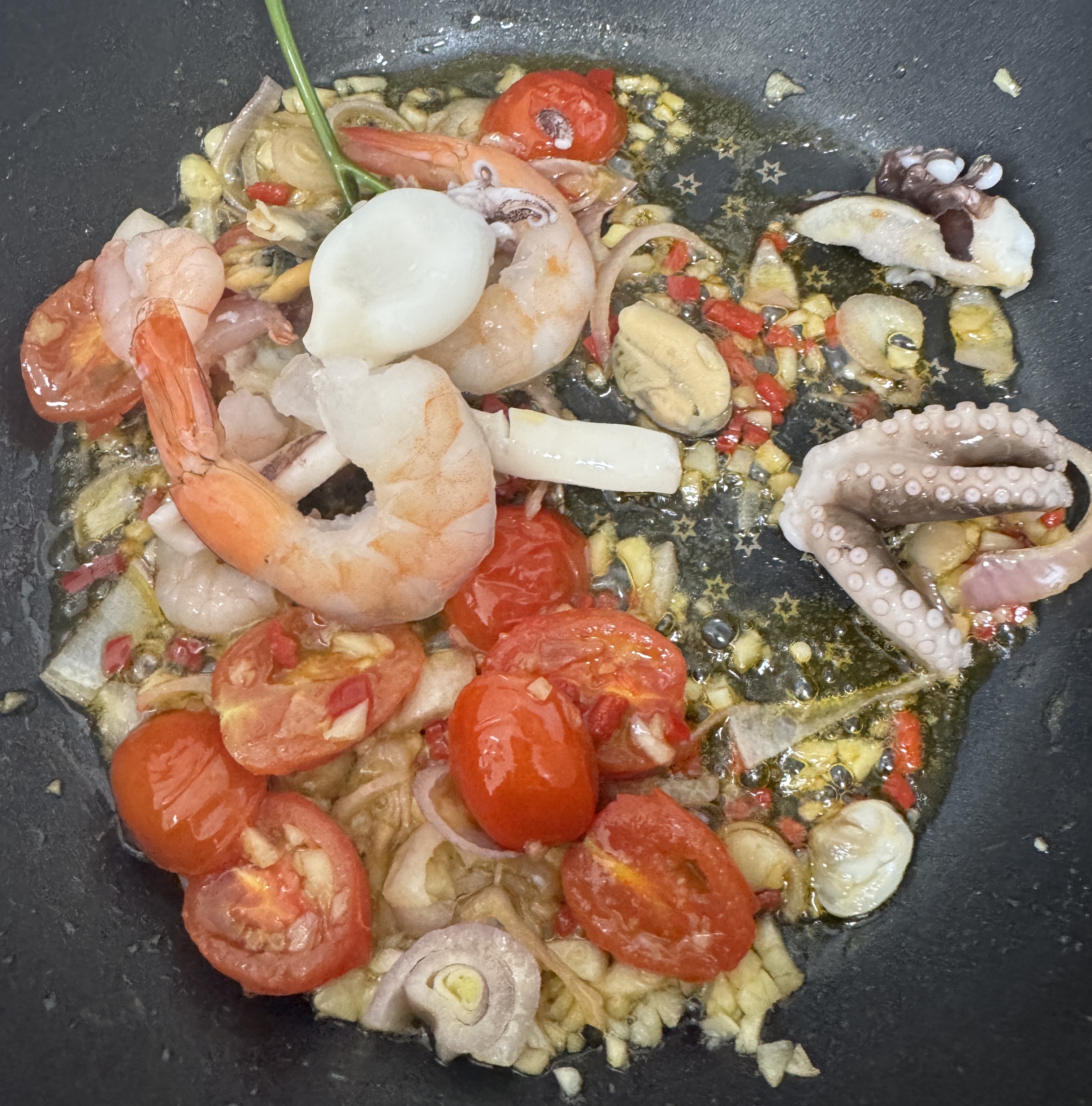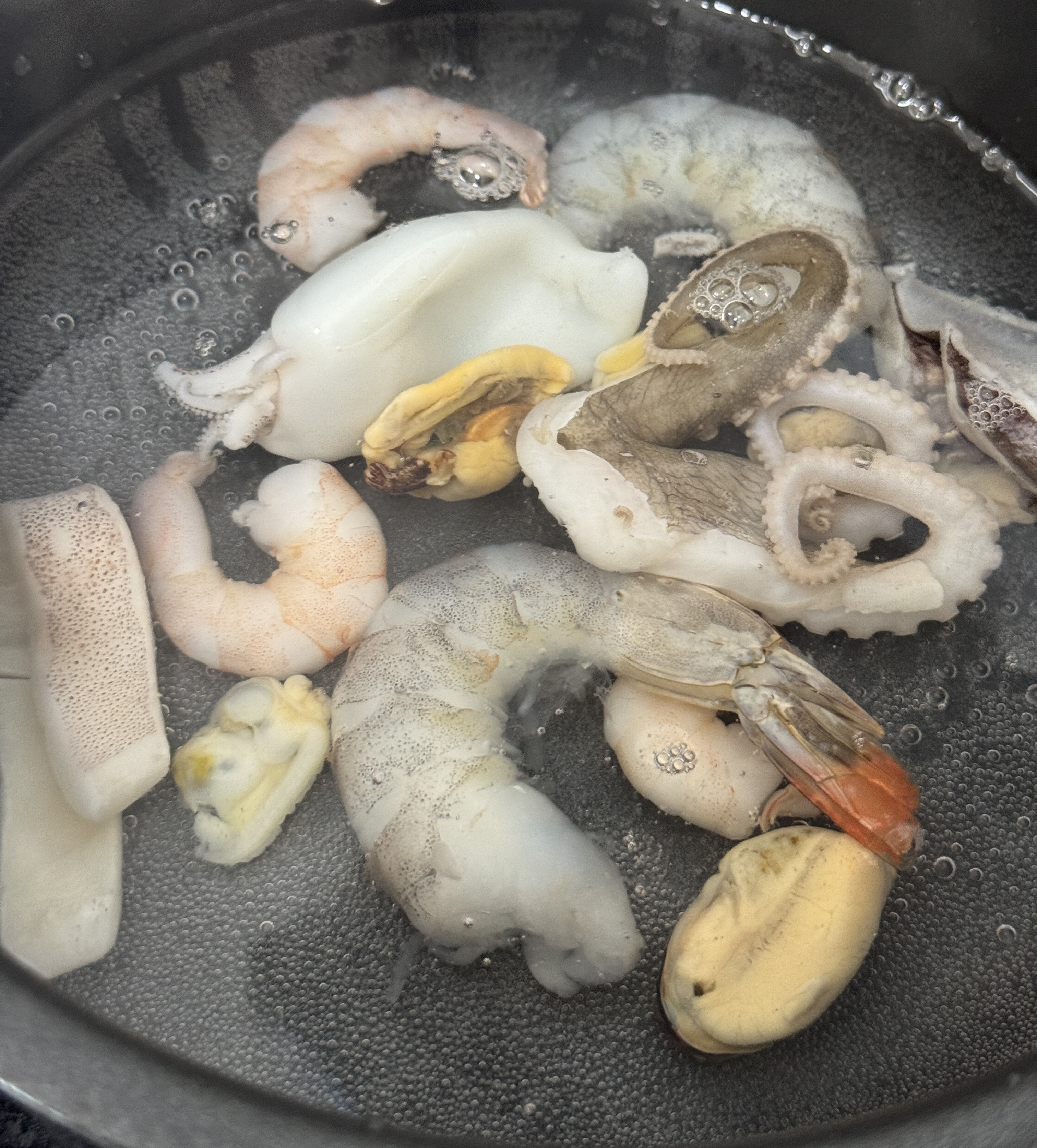 2.해동시킨 해물천지 해물 넣어줍니다.