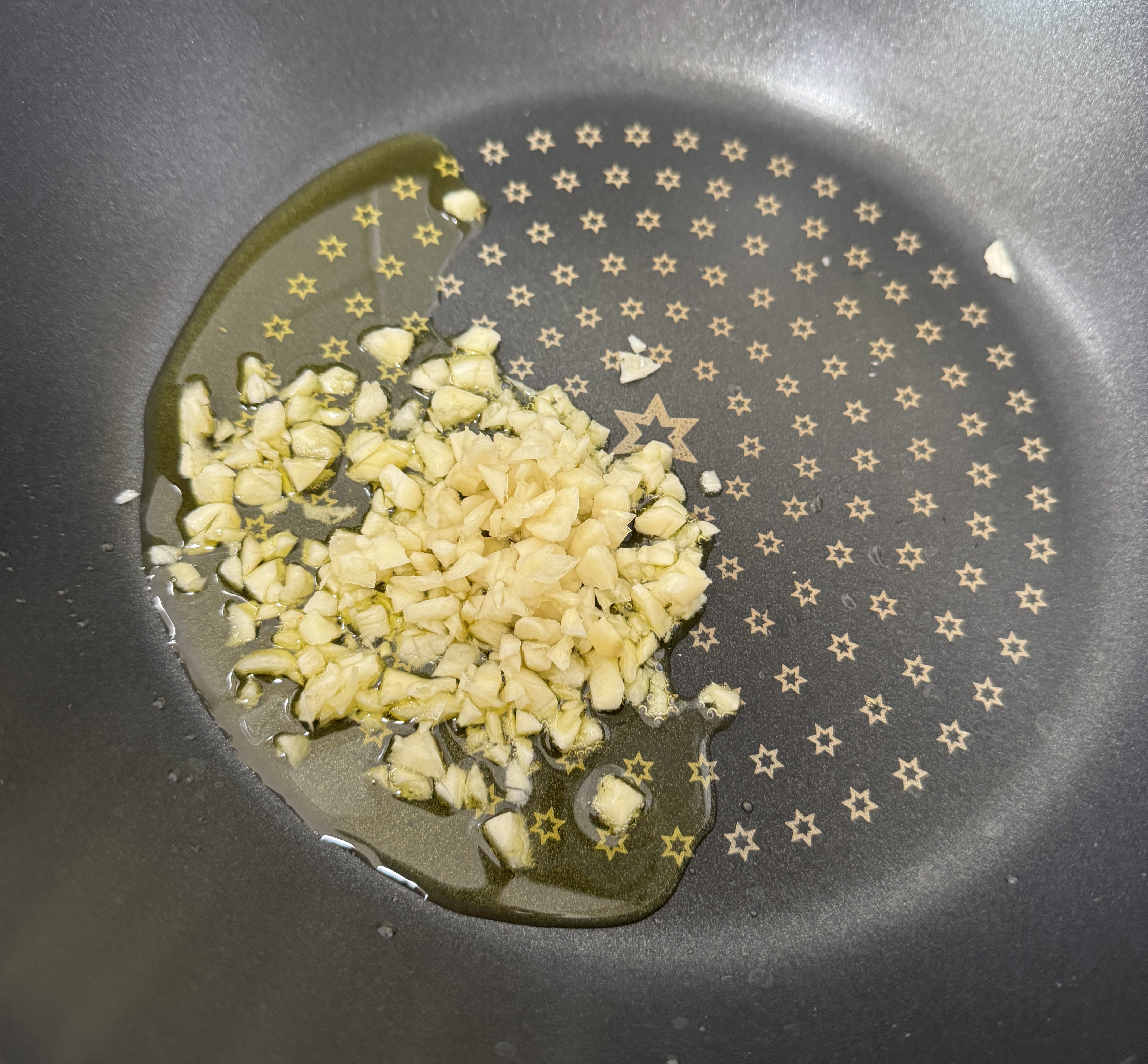 1.올리브유(evo)에 마늘 넣고 익힙니다.