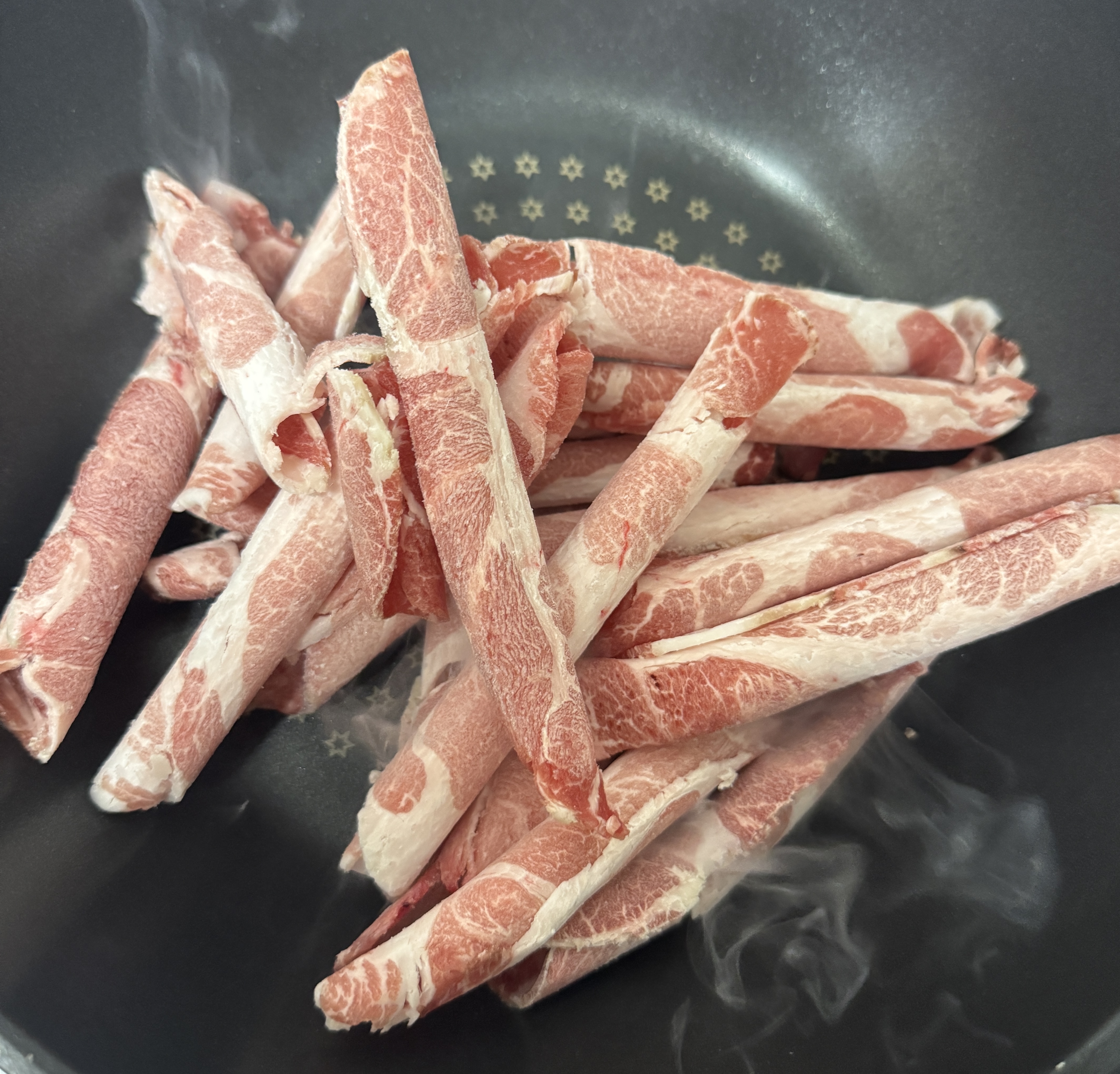 1. 코스트코에서 구입한 이베리코 목심 달궈진 후라이팬에 올립니다.