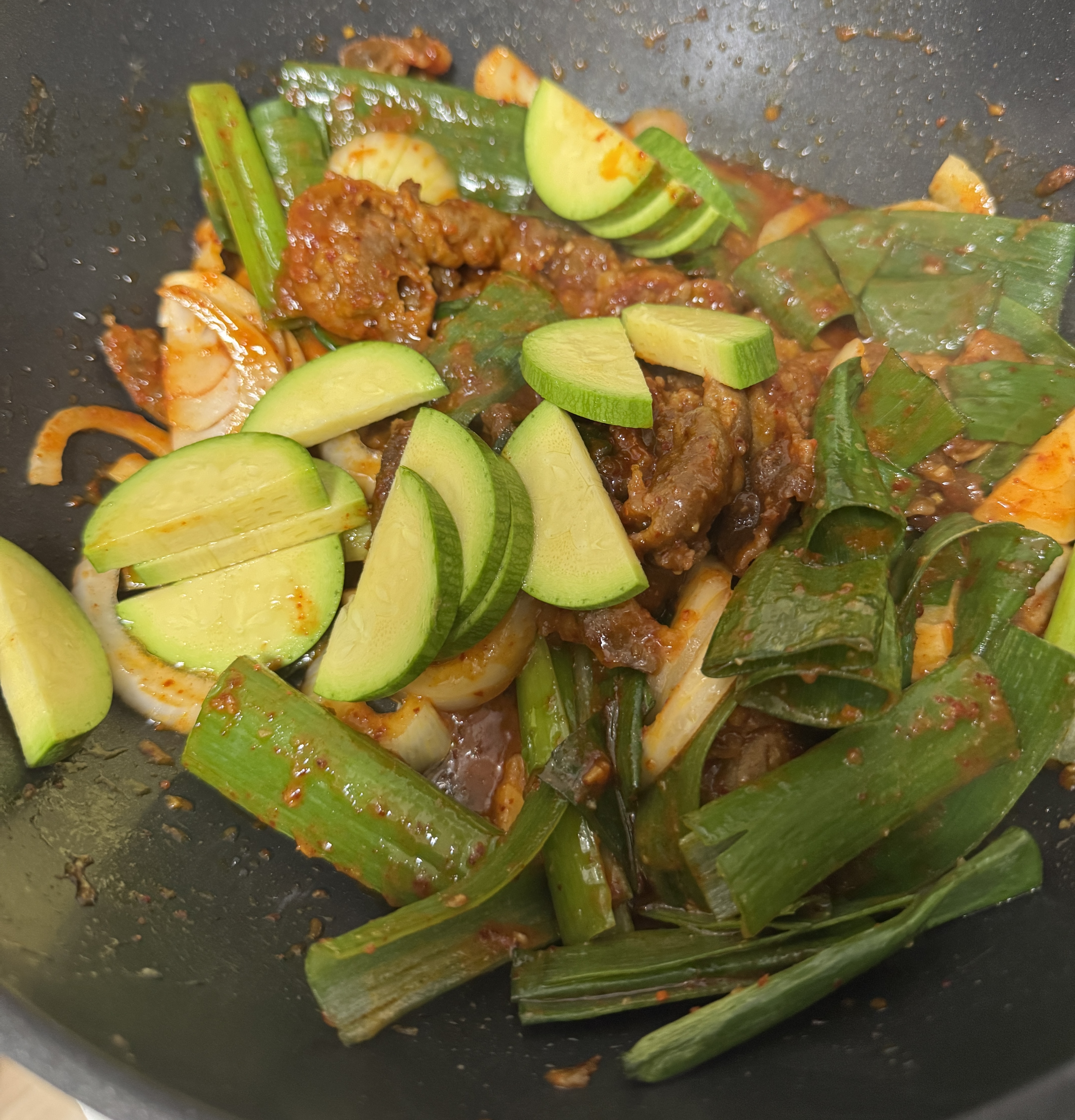 마지막에 애호박을 넣어줍니다.
