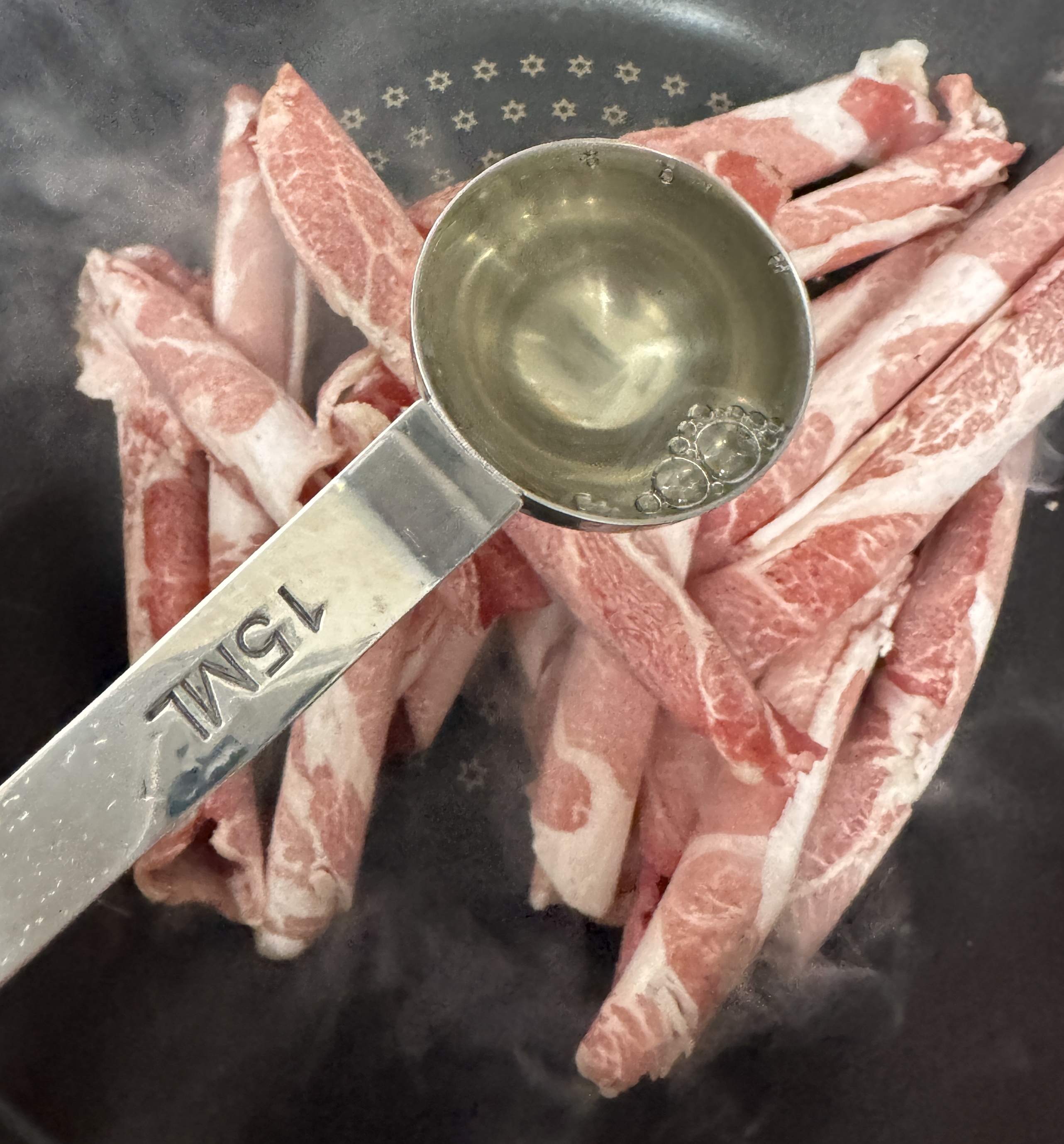 달궈진 후라이팬에 투척했어요 ;;