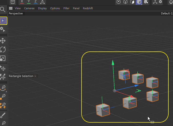 클릭 드래그 하면 나타나는 사각 박스안에 오브젝트를 넣으면 오브젝트가 선택됩니다.