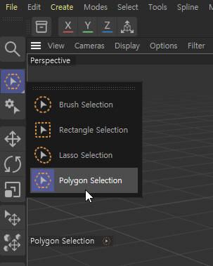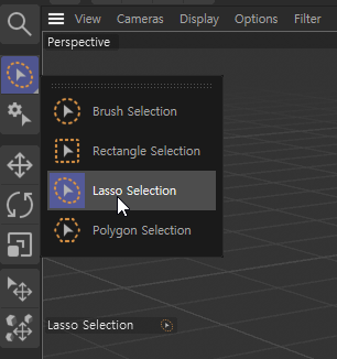 Lasso Selection 라쏘셀렉션 (단축키 : 8) : 선택 모양을 직접 그립니다.