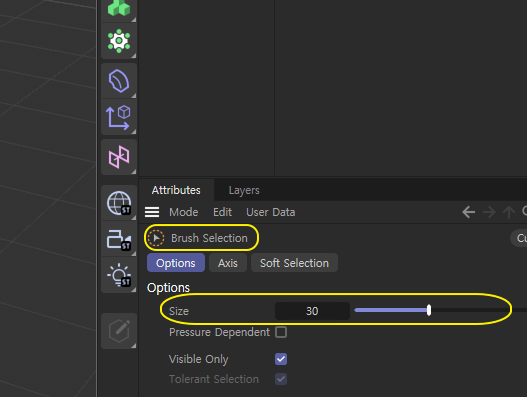 시네마4d Brush Selection 브러쉬셀렉션 브러쉬 크기 변경 알아볼게요.