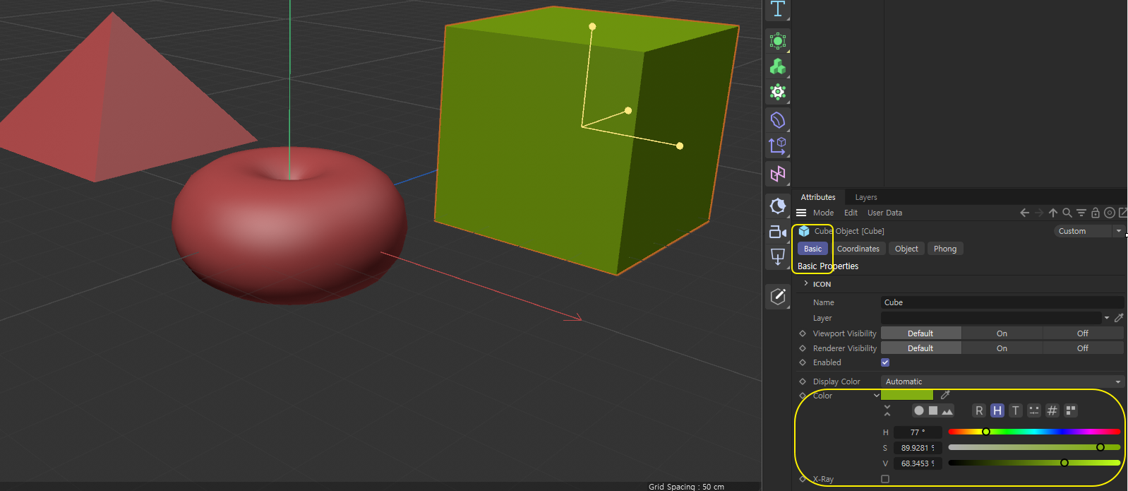 오브젝트 컬러를 빨간색으로 바꿔보았습니다.