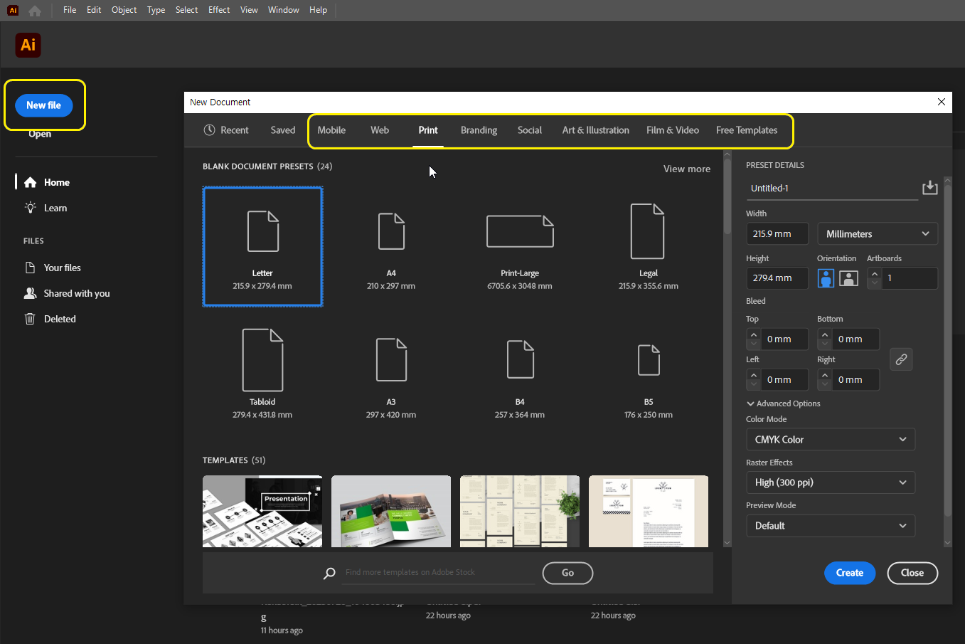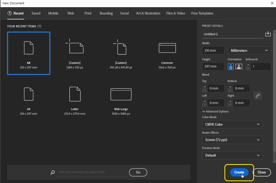 어도비 일러스트레이터(일러스트) 문서 만들기 방법은 총 3가지가 있습니다.