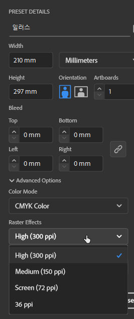 2.일러스트레이터(일러스트) 문서 만들기 종류