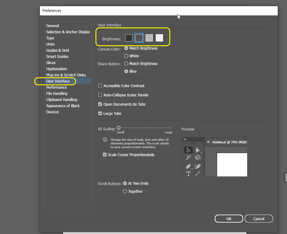 인터페이스 캔버스 색상 변경이 가능합니다.