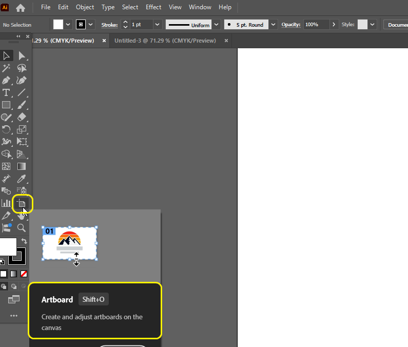 ② 아트보드 옆에 아트보드 추가하려면 아트보드툴 클릭합니다.